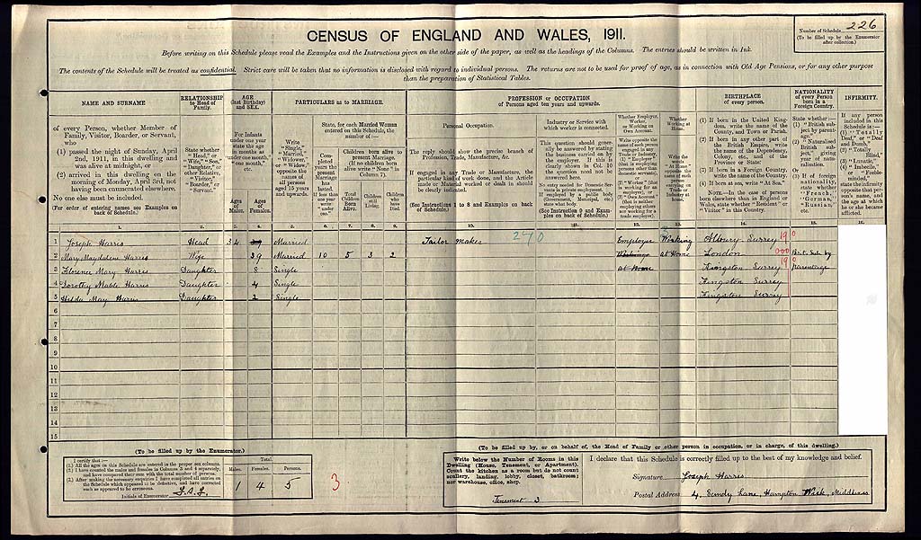 1911 Census Schedule # 226