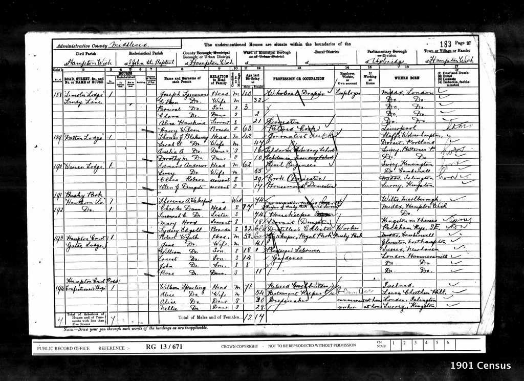 1901 Census Schedule # 188